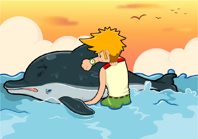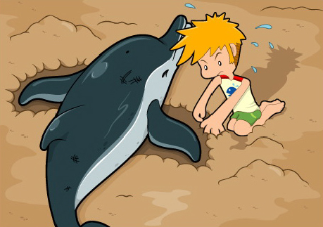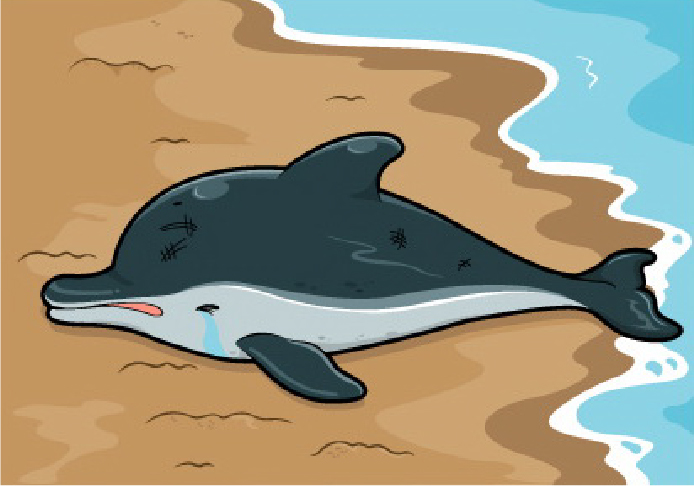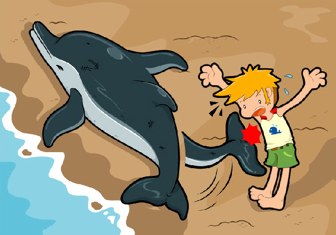 3.如果鯨豚呈現側躺或是仰躺,請立即將其扶正(背