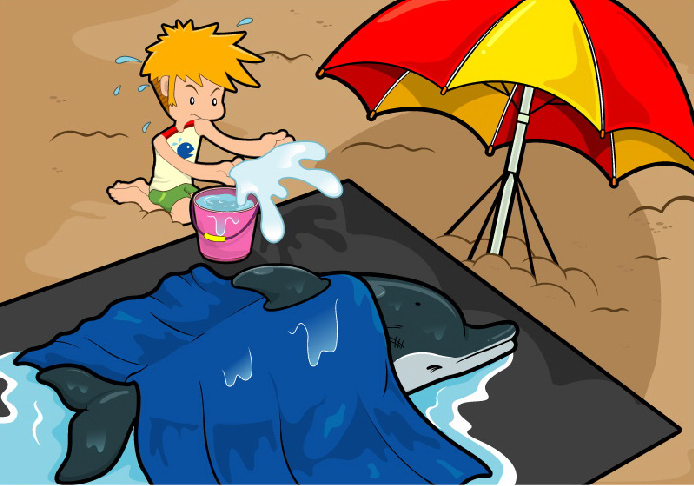 1.利用床單或是毛巾覆蓋鯨豚身體 注意要避開呼吸孔 如果手邊